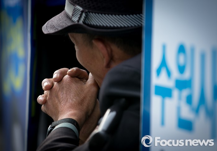 (수원=포커스뉴스) 4일 오후 경기도 수원 팔달문시장 앞에서 한 어르신이 더불어민주당 수원지역 합동유세를 지켜보고 있다.