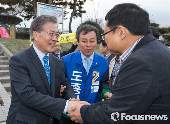 (청주=포커스뉴스) 문재인 더불어민주당 전 대표가 4일 오후 충북 청주 무심천인라인스케이트장에서 시민들과 인사를 하고 있다.