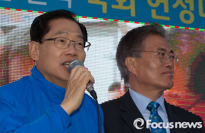 (청주=포커스뉴스) 4일 오후 충북 청주 무심천인라인스케이트장에서 오제세 후보가 시민들에게 지지를 호소하고 있다.