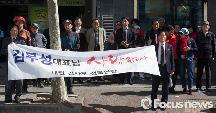 (대전=포커스뉴스) 5일 오전 대전 서구 한민시장 일원에서 지지자들이 김무성 새누리당 대표 최고위원의 지지 호소를 듣고 있다.