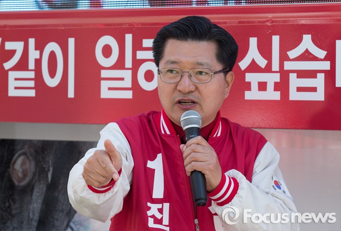 (대전=포커스뉴스)5일 오전 대전 유성구 족욕체험장 일원에서 진동규 후보가 지지를 호소하고 있다.
