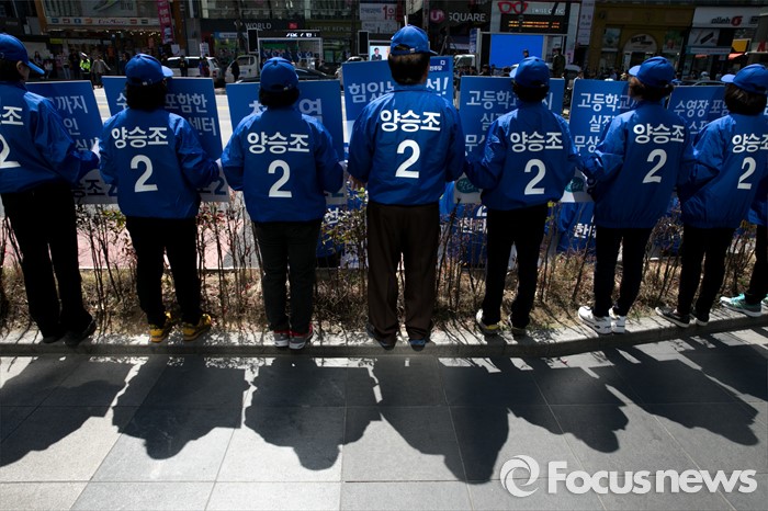 | △ 지지 호소하는 더민주 선거운동원들 |