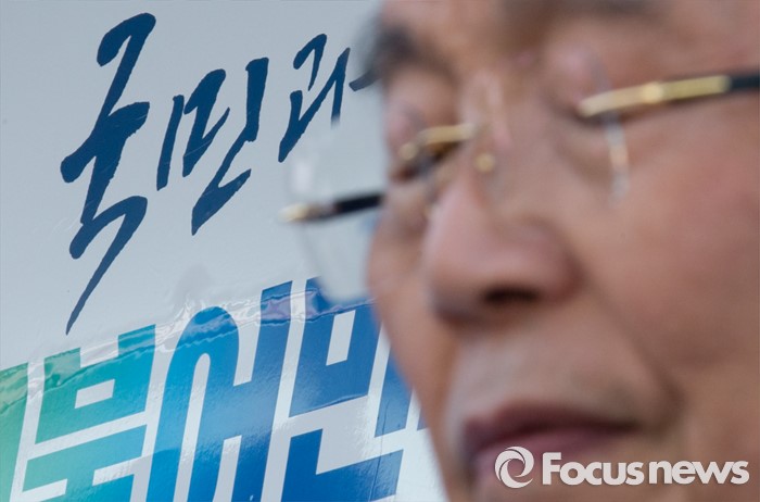 (평택=포커스뉴스) 5일 오후 경기도 평택역 앞 광장에서 열린 더불어민주당 평택지역 합동유세에 참석한 김종인 비대위 대표 겸 선대위원장이 생각에 잠겨 있다.