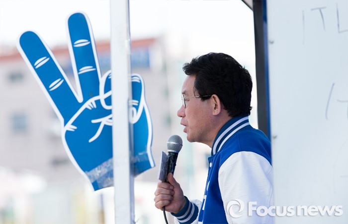 (서울=포커스뉴스) 5일 오후 서울 관악구 서울대입구역 인근에서 유기홍 더불어민주당 관악구갑 후보가 선거유세를 하고 있다.