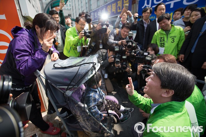 (의정부=포커스뉴스) 안철수 국민의당 상임공동대표가 5일 오후 의정부시 태평로 제일시장 앞에서 김경호 의정부갑 후보 지원유세를 하고 있다.