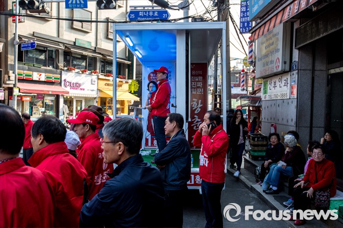 (서울=포커스뉴스) 황춘자 새누리당 용산구 후보가 5일 오후 서울 용산구 이태원동 일대에서 유세를하며 주민들에게 한 표를 호소 하고 있다.