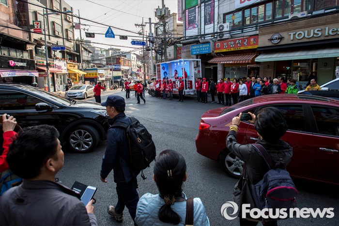 (서울=포커스뉴스) 황춘자 새누리당 용산구 후보가 5일 오후 서울 용산구 이태원동 일대에서 유세를하며 주민들에게 한 표를 호소 하고 있다.