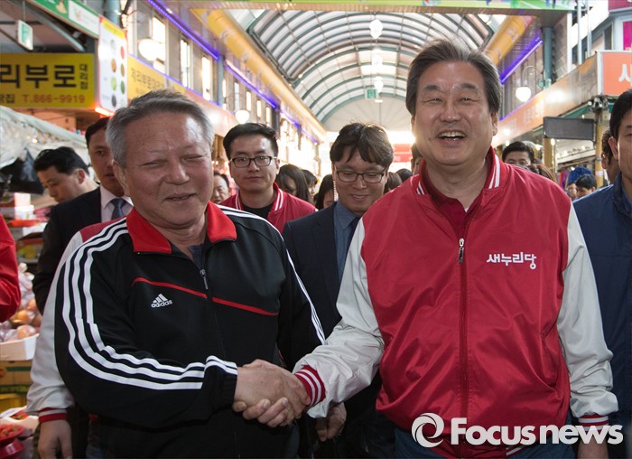 (세종=포커스뉴스) 김무성 새누리당 대표가 5일 오후 세종시 조치원읍 세종전통시장을 방문, 박종준 후보의 지지를 호소하고 있다.