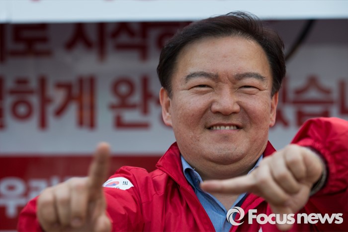 (인천=포커스뉴스) 20대 총선에 출마한 새누리당 민경욱 연수을 후보가 5일 오후 인천 연수구 송도동에서 로고송에 맞춰 선거율동을 선보이고 있다.