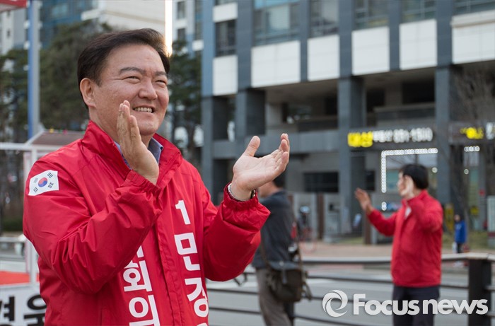 (인천=포커스뉴스) 20대 총선에 출마한 새누리당 민경욱 연수을 후보가 5일 오후 인천 연수구 송도동에서 선거유세를 하고 있다.