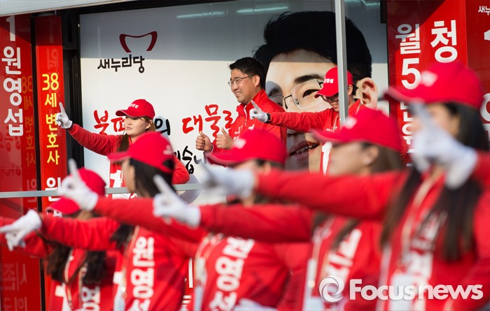 (서울=포커스뉴스) 5일 오후 서울 관악프라자센터 앞에서 원영섭 새누리당 관악구갑 후보가 선거유세를 하고 있다.