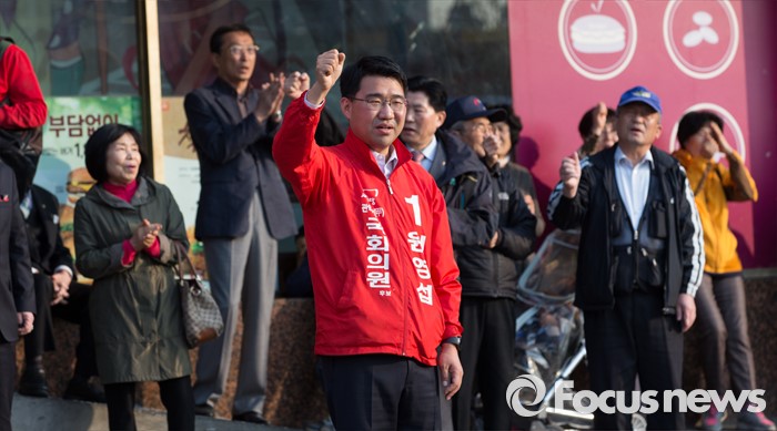 (서울=포커스뉴스) 5일 오후 서울 관악프라자센터 앞에서 원영섭 새누리당 관악구갑 후보가 선거유세를 하고 있다.