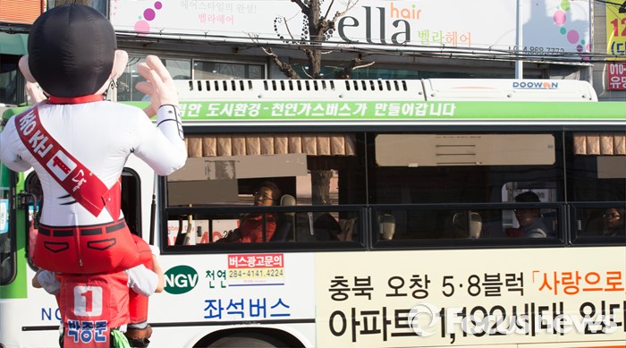 (세종=포커스뉴스) 5일 오후 세종시 조치원읍 조치원역 앞 교차로에서 선거운동원들이 박종준 후보의 지지를 호소하고 있다.