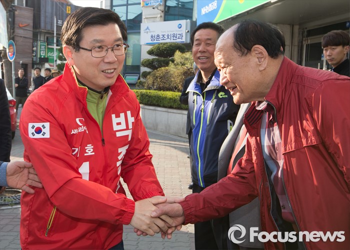 (세종=포커스뉴스) 5일 오후 세종시 조치원읍 조치원역 앞 교차로에서 박종준 후보가 시민들에게 지지를 호소하고 있다.