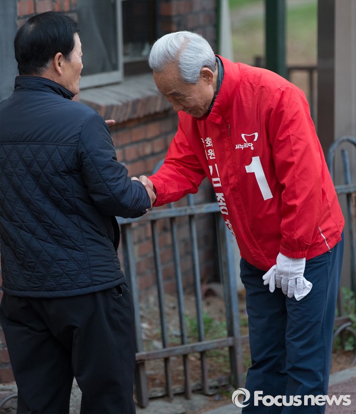 (서울=포커스뉴스) 20대 총선 출마한 김종훈 새누리당 강남을 후보가 5일 오후 서울 강남구 개포주공1단지아파트 인근에서 유권자들에게 지지를 호소하고 있다.
