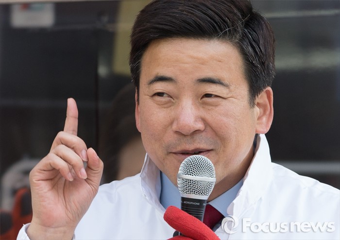 (서울=포커스뉴스) 20대 총선에 출마한 정준길 새누리당 광진을 후보가 5일 오후 서울 건대입구역 인근에서 유권자들에게 지지를 호소하고 있다.