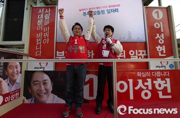 (서울=포커스뉴스) 5일 오후 서울 서대문구 충현동 인근에서 새누리당 서대문갑 이성헌 후보가 유세를 하고 있다.