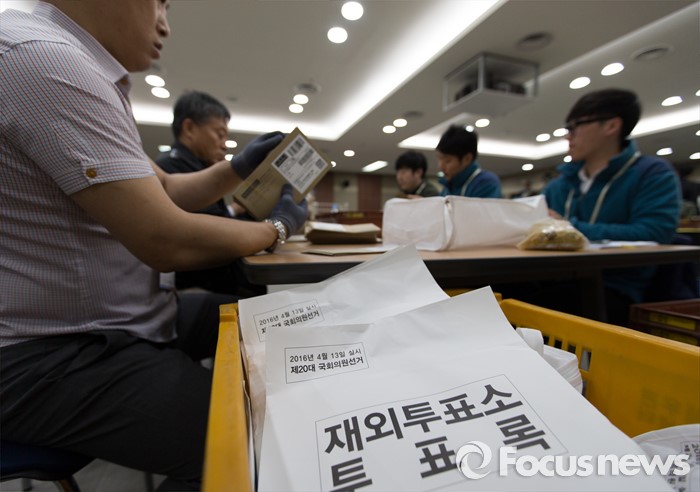 (인천=포커스뉴스) 제20대 국회의원선거 재외투표 우편물 접수 시작일인 6일 오전 인천 중구 국제우편물류센터에서 직원들이 재외투표 회송 우편물을 분류하고 있다.