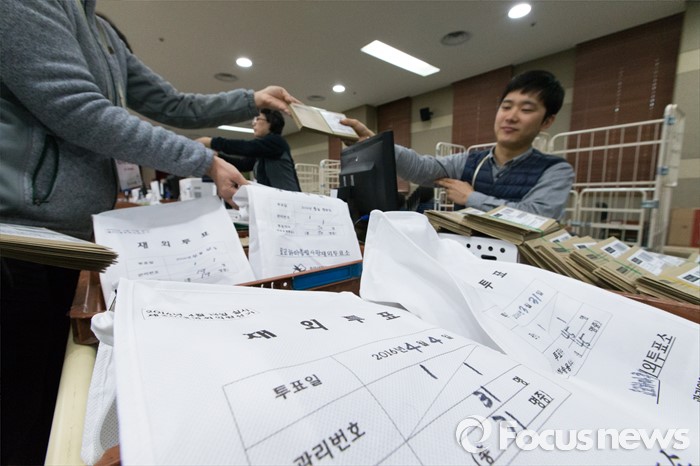 (인천=포커스뉴스) 제20대 국회의원선거 재외투표 우편물 접수 시작일인 6일 오전 인천 중구 국제우편물류센터에서 직원들이 재외투표 회송 우편물을 접수하고 있다.
