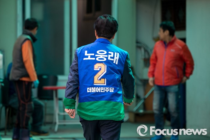 (서울=포커스뉴스) 노웅래 더불어민주당 마포구갑 후보가 6일 오전 서울 마포구 공덕동 일대에서 선거운동을 하고 있다.