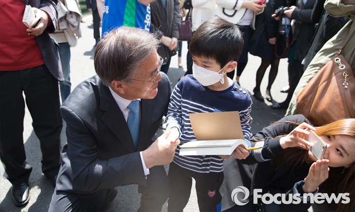 | △ 어린이와 기념촬영하는 문재인 |
