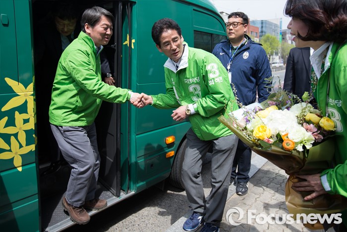 (대구=포커스뉴스) 안철수 국민의당 상임공동대표가 6일 오후 대구광역시 북구 경북대학교 앞에서 최석민 대구 북구갑 후보와 인사를 나누고 있다.