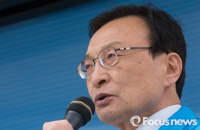 (세종=포커스뉴스) 이해찬 무소속 후보가 6일 오후 세종시 도담동 중앙타운 네거리에서 지지를 호소하고 있다.