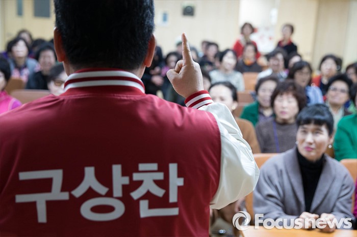 (서울=포커스뉴스) 총선을 일주일 앞둔 6일 오후 서울 강서구의 한 노래교실을 찾은 구상찬 새누리당 강서구갑 후보가 지지를 호소하고 있다.