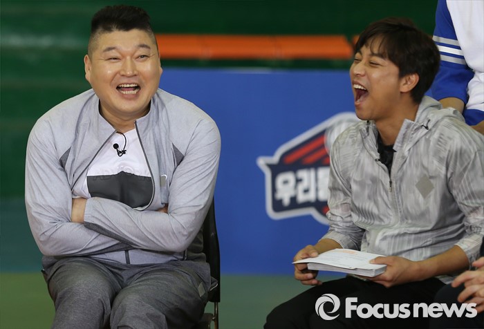 (서울=포커스뉴스) 6일 오후 서울 강서구 KBS스포츠월드에서 열린 예능프로그램 '우리동네 예체능' 촬영현장 공개 행사에 참여한 방송인 강호동(왼쪽)과 배우 오만석이 녹화에 임하고 있다.