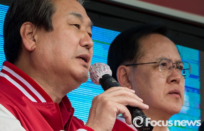 (아산=포커스뉴스) 6일 오후 충남 아산 충무로에서 이명수 새누리당 아산시갑 후보 지원유세에 나선 김무성 대표가 유권자들에게 지지를 호소하고 있다.