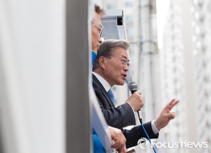 | △ 시민들에게 지지호소하는 문재인 |