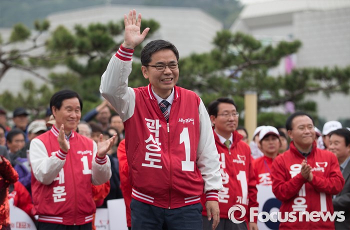 (대구=포커스뉴스) 곽상도 새누리당 중구남구 후보가 6일 오후 대구광역시 달서구 성당동 일대에서 열린 대구지역 후보자 총집결 거리유세에서 유권자들에게 인사하고 있다.