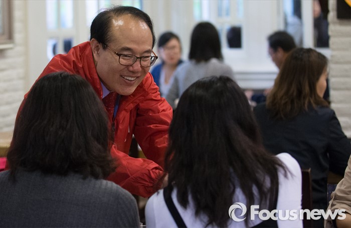 (인천=포커스뉴스) 제20대 총선에 출마한 윤형선 새누리당 계양을 후보가 6일 오후 인천 계양구 홈플러스 계산점에서 선거운동을 하고 있다.