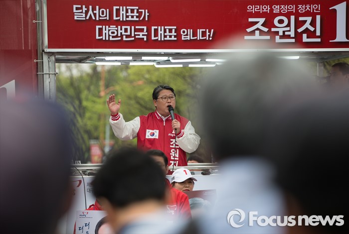 (대구=포커스뉴스) 조원진 새누리당 달서구병 후보가 6일 오후 대구광역시 달서구 성당동 일대에서 열린 대구지역 후보자 총집결 거리유세에서 유권자들에게 지지를 호소하고 있다.