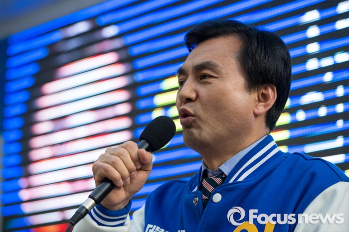 (서울=포커스뉴스) 안규백 더불어민주당 동대문구갑 후보가 6일 오후 서울 동대문구 휘경동 일대에서 유권자들에게 소중한 한 표를 호소 하고 있다.