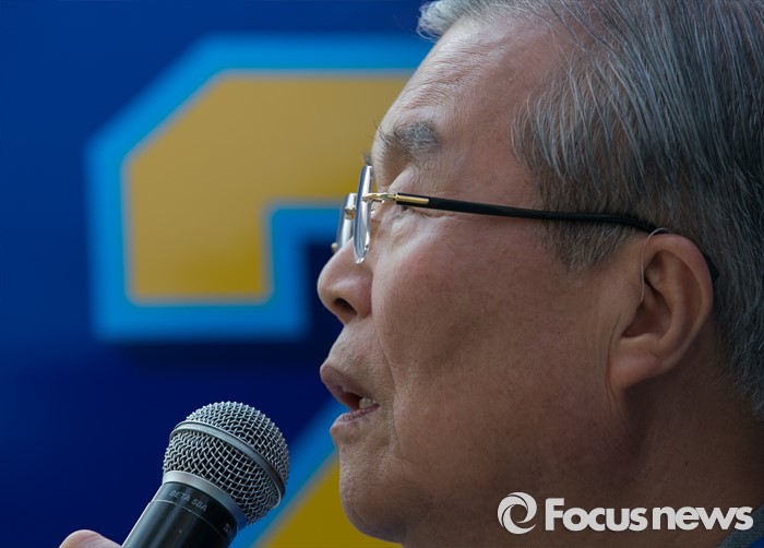 (서울=포커스뉴스) 6일 오후 서울 롯데백화점 미아점 앞에서 김종인 더불어민주당 비대위 대표 겸 선대위원장이 박용진 강북을 후보의 지지를 호소하고 있다.