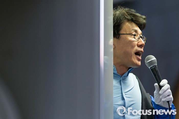 (서울=포커스뉴스) 20대 총선을 일주일 앞둔 6일 오후 서울 강서구 신방화역 인근에서 진성준 더불어민주당 강서구을 후보가 퇴근길 유세를 하고 있다.