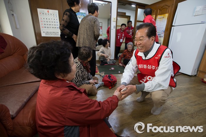 (서울=포커스뉴스) 6일 오후 서울 영등포구 대림1동 일대에서 권영세 새누리당 영등포구을 후보자가 유세를 하고 있다.