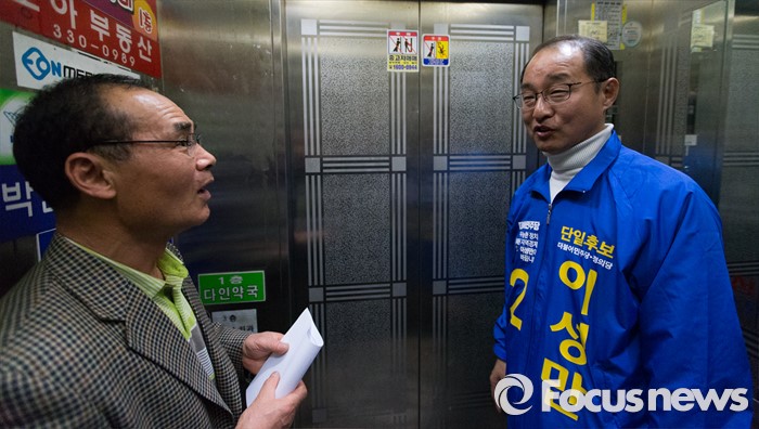 (인천=포커스뉴스) 제20대 총선에 출마한 이성만 더불어민주당 부평갑 후보가 6일 오후 인천 부평구 부개역 인근에서 선거운동을 하고 있다.