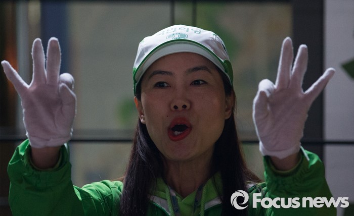 (인천=포커스뉴스) 제20대 총선에 출마한 문병호 국민의당 부평갑 후보 선거운동원이 6일 오후 인천 부평구 부평역 인근에서 선거운동을 하고 있다.