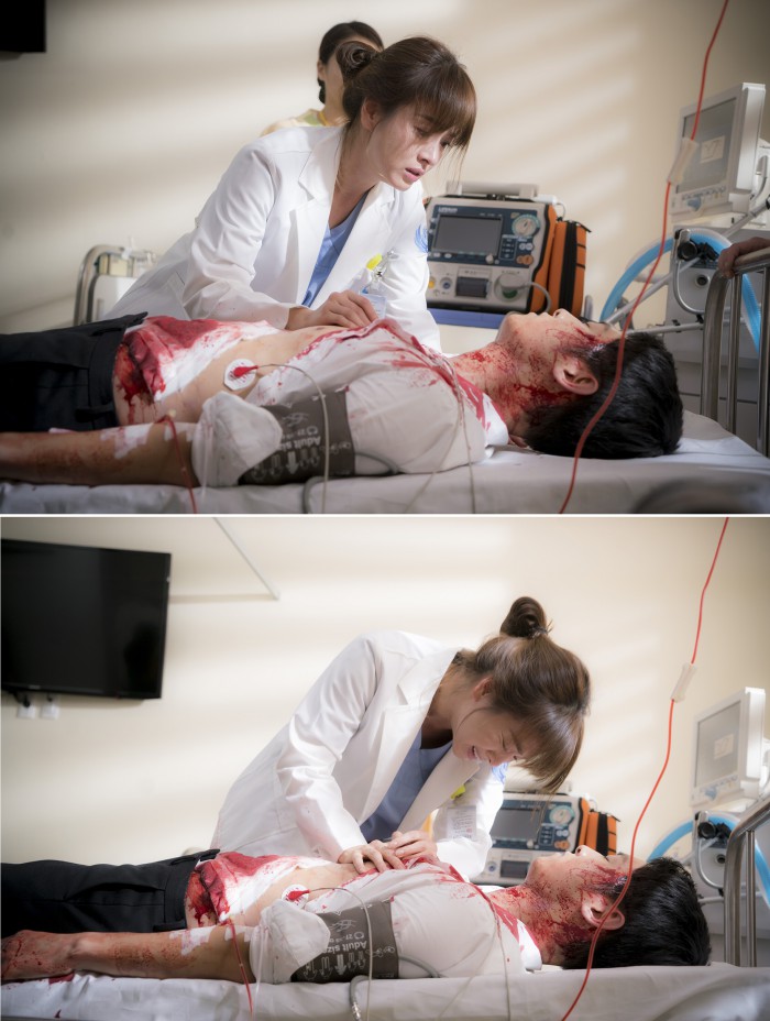 이날 '태양의 후예' 방송에서는 송송커플 송중기(유시진 역), 송혜교(강모연 역)의 알콩달콩한 서울 로맨스가 그려졌다. 하지만 그것도 잠시, 알파팀으로서 남북 특사회담 경호를 맡은 유시진이 강모연의 병원에 피투성이가 된 채 실려 오며 예측 불가한 엔딩을 맞았다.6일 방송된 KBS2 수목드라마 '태양의 후예'가 평균 시청률 33.5%를 기록했다. 사진은 드라마 스틸. <사진제공=태양의후예 문화산업전문회사 & NEW>