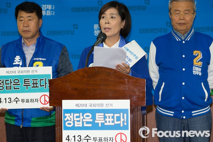 (남양주=포커스뉴스) 7일 오전 경기도 남양주시청에서 최민희 더불어민주당 남양주병 후보가 공동정책 공약을 발표하고 있다.