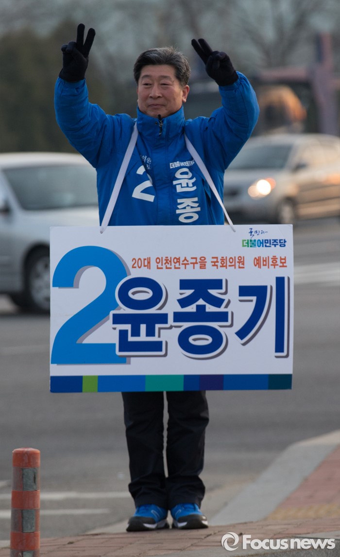 윤 후보는 "정의당 김상하 후보, 국민의당 한광원 후보, 더불어민주당 윤종기 모든 기득권을 내려놓고 양보와 타협을 통해 야권단일화를 이뤘다"면서 "큰 뜻을 모아준 두 후보께 감사드리고, 이제는 정권 교체와 국민의 행복을 향한 권리를 되찾고자 반드시 선거에 승리하다"고 소감을 밝혔다.(인천=포커스뉴스) 제20대 총선 선거운동이 공식적으로 시작된 지난 달 31일 오전 인천 연수구 한 사거리에서 윤종기 더불어민주당 연수을 후보가 출근하는 시민들에게 인사하며 지지를 호소하고 있다. 2016.03.31 오장환 기자