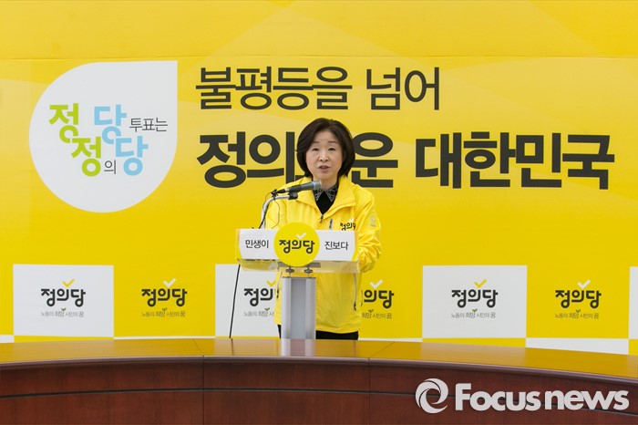 (서울=포커스뉴스) 심상정 정의당 대표가 7일 오전 서울 여의도 국회에서 총선전략 기자회견을 하고 있다.