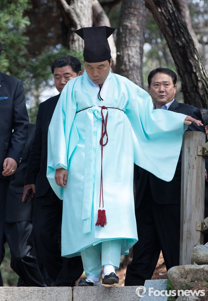 (남양주=포커스뉴스) 7일 오전 경기 남양주 다산유적지에서 손학규 전 더불어민주당 상임고문이 다산 정약용 선생 180주기 묘제·헌다례를 마치고 이동하고 있다.