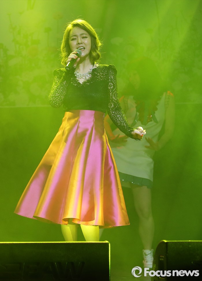 (서울=포커스뉴스) 7일 오후 서울 마포구 하나투어 브이홀에서 가수 금잔디가 정규 3집 앨범 '설렘' 발표 쇼케이스에 참석해 '아저씨 넘버원'의 무대를 선보이고 있다.