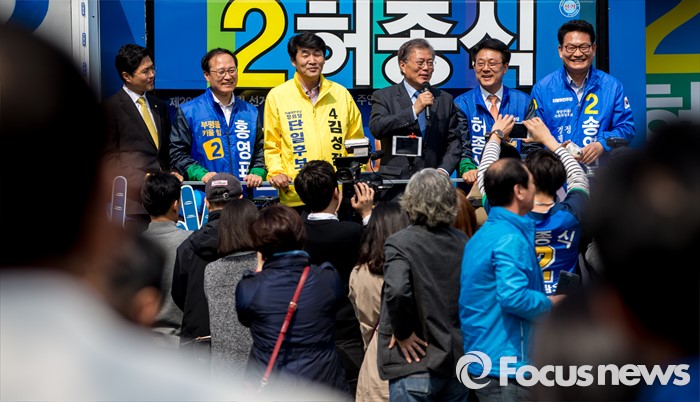 (인천=포커스뉴스) 문재인 더불어민주당 전 대표가 7일 오후 인천광역시 지하철1호선 주안역 남광장에서 열린 인천 지역 후보 합동유세에서 유권자들에게 소중한 한 표를 호소 하고 있다.