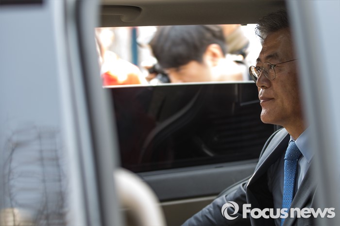 (인천=포커스뉴스) 문재인 더불어민주당 전 대표가 7일 오후 인천광역시 지하철1호선 주안역 남광장에서 열린 인천 지역 후보 합동유세를 마친 뒤 다음 유세 장소로 이동 하고 있다.