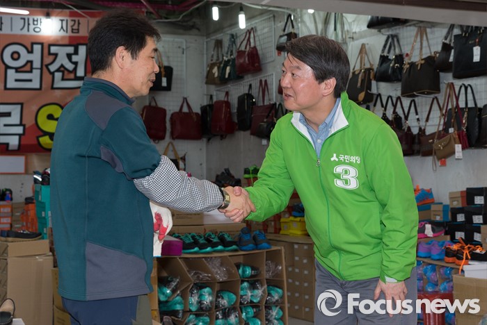 (서울=포커스뉴스) 7일 오후 서울 송파구 마천시장에서 안철수 국민의당 상임공동대표가 차성환 국민의당 송파구병 후보 지원유세를 하고 있다.