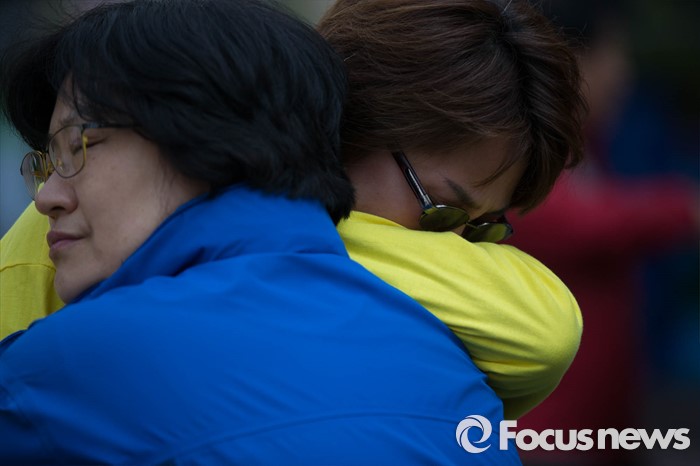 (서울=포커스뉴스) 20대 총선을 6일 앞둔 7일 오후 서울 동작구 남성역 골목시장 인근에서 허동준 더불어민주당 동작구을 후보측 선거운동원과 김종철 정의당 후보측 선거운동원이 포옹하고 있다.